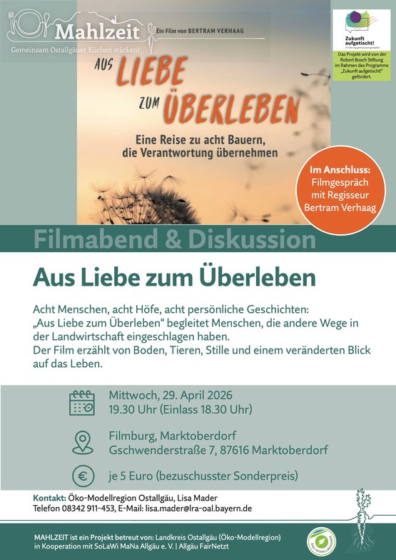 Erleben Sie in Kooperation mit der Öko-Modellregion Ostallgäu und der filmburg Marktoberdorf einen packenden Filmabend mit anschließender Podiumsdiskussion rund um nachhaltige Landwirtschaft und Ernährung.